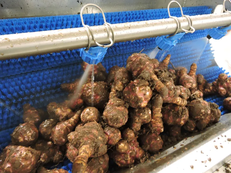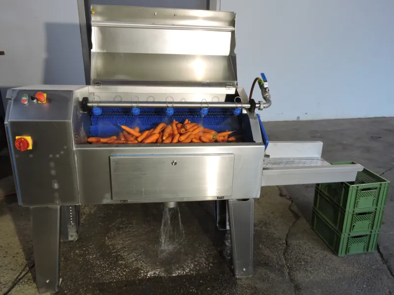 Die kleine Bürstenwaschmaschine eignet sich optimal für das Reinigen von kleineren Mengen Gemüse.