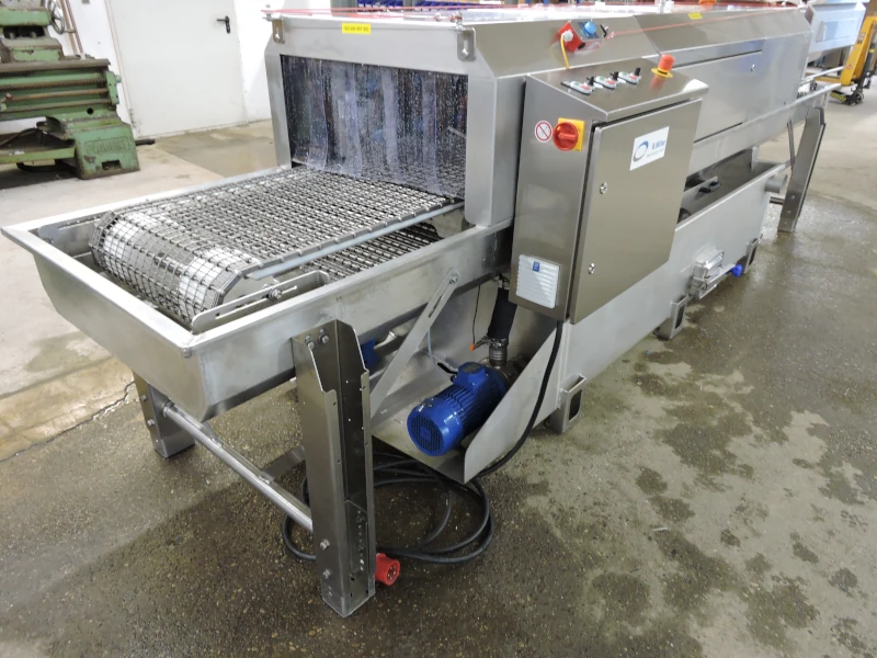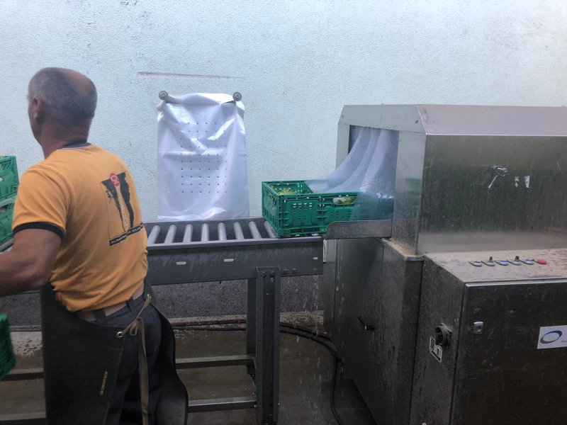 Die Waschmaschine ermöglicht ein sanftes waschen von Gemüse in Kisten.